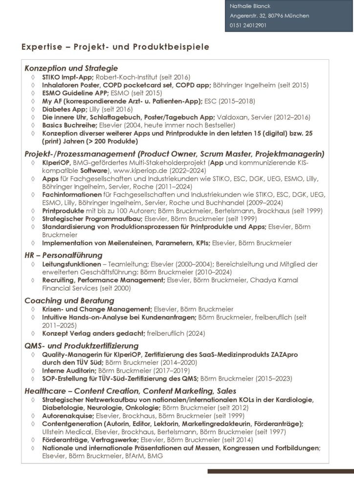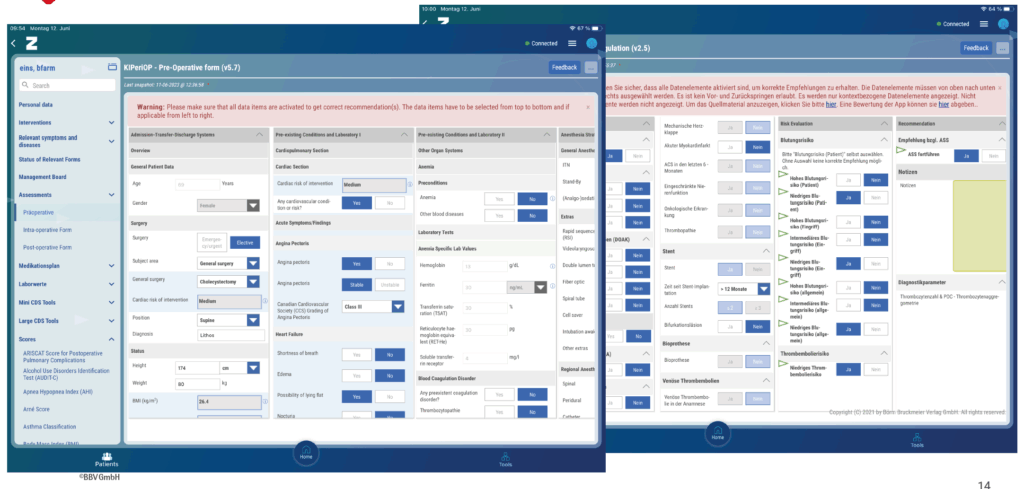 Als Projektmanagerin und Product Owner für Börm Bruckmeier GmbH habe ich die ärztlichen Anforderungen für die Formulare zu Prämedikation, intra- und postoperativen Komplikationen als Grundlage für die Softwareprogrammierung mit über 2500 Datenfeldern zusammengeführt, mit den KollegInnen die CDS-Tools (maschinenlesbare Algorithmen) u.a. zu prä- und postoperativem Delirscreening zusammengeführt, außerdem oblag mir das Management der Testung, die Adaptation und inhaltliche Aktualisierung aller anderen im KIperiOP-Projekt enthaltenen CDS-Tools und Scores.