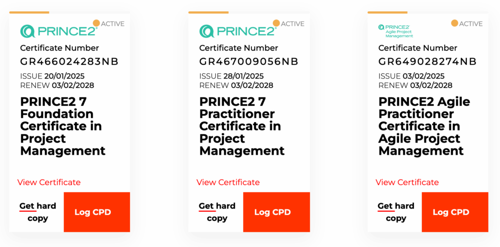 Viele potenzielle neue Auftragsgeber hätten gern, dass ich mein über die Jahre angesammeltes Wissen nicht nur benenne, sondern dass ich auch eine Bescheinigung dafür vorweisen kann. Also mache ich im Herbst 2024 mehrere Projektmanagement-Zertifikate. In den Kursen erfahre ich sehr viel Wertschätzung und Anerkennung – meine Expertise im Projektmanagement, gerade auch im agilen Umfeld, ist für die Fortbildungsgruppe vor Vorteil, hilft bei der Teamarbeit und auch in den Prüfungen.