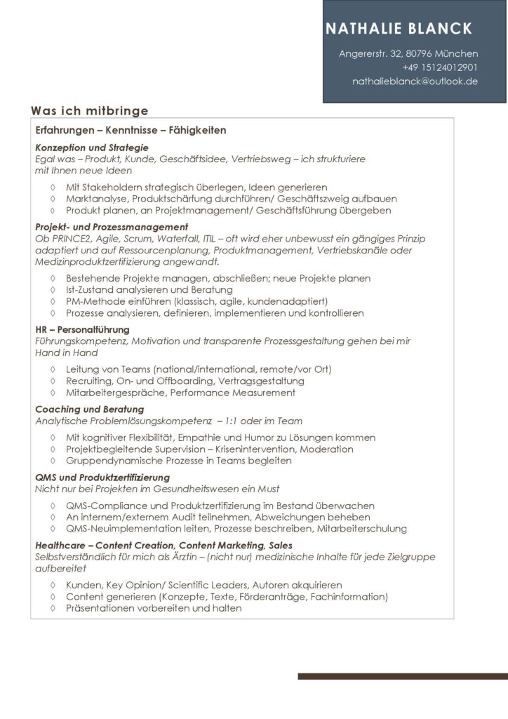 Neben strategischer Konzeptarbeit für medizinische Großkunden und Projekten im Qualitätsmanagementbereich biete ich mein offenes Ohr in Kombination mit meiner pragmatischen Sicht auf Herausforderungen auch als Beratung für Einzelpersonen an.